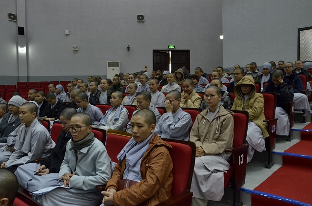 Tham dự buổi tọa đàm có HT. Thích Hải Ấn – UVTT HĐTS GHPGVN, Viện trưởng Học viện PGVN tại Huế; chư Tôn đức Hội đồng Điều hành Học viện; chư Tôn đức giảng sư, giảng viên Học viện; TS. Nguyễn Xuân Hùng – Giám đốc Trung tâm Lưu trữ Quốc gia IV (Đà Lạt); các Nhà nghiên cứu cùng toàn thể Tăng Ni sinh các khóa.