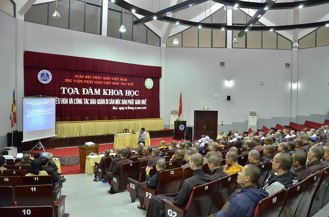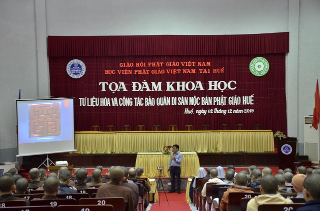 Chiều 02/12/2019 tại Học viện PGVN tại Huế, phường An Tây, thành phố Huế đã diễn ra buổi tọa đàm khoa học “Tư liệu hóa và công tác bảo quản di sản Mộc bản Phật giáo Huế”.