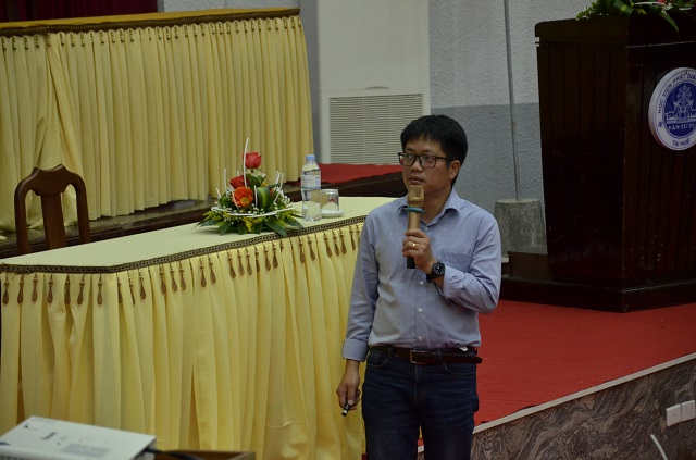 TS. Nguyễn Xuân Hùng trình bày công tác bảo quản di sản mộc bản