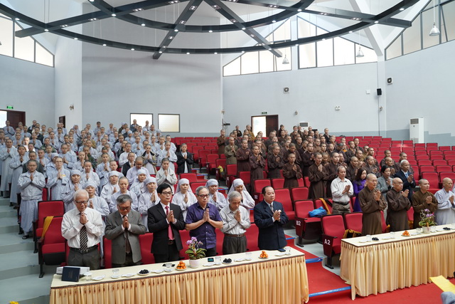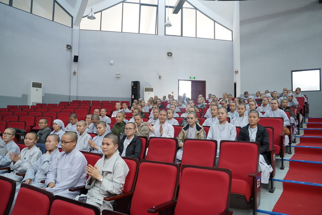 Ban đạo từ tại buổi lễ, Hòa thượng Viện trưởng Thích Hải Ấn đã có lời tri ân đến chư Tôn đức Hội đồng Điều hành, quý giảng sư, giảng viên đã hết lòng hoàn thành trọng trách của mình vì sự nghiệp đào tào Tăng tài của Học viện; Hòa thượng đã có lời sách tấn đến toàn thể Tăng Ni sinh, đánh giá cao quá trình nỗ lực học tập của Tăng Ni sinh các khóa trong năm vừa qua. Nhân dịp đón chào năm mới Canh Tý (2020), Hòa thượng đã có lời chúc sức khỏe, an lành đến chư Tôn thiền đức Tăng Ni, quý giảng sư, giảng viên cùng toàn thể Tăng Ni sinh Học viện.