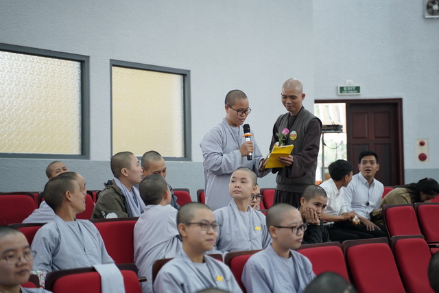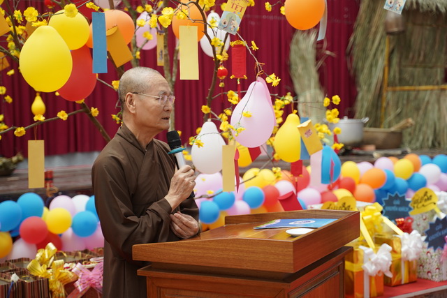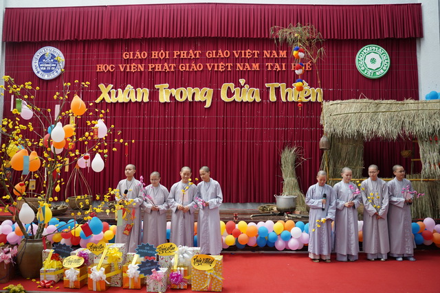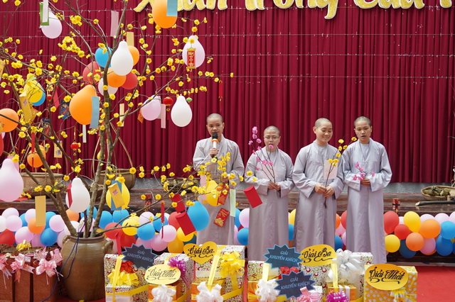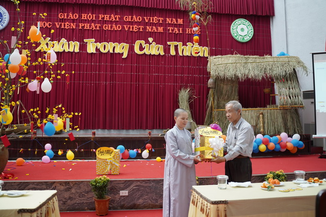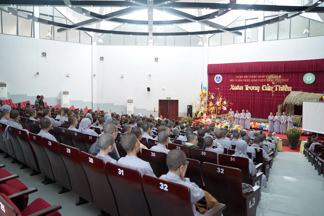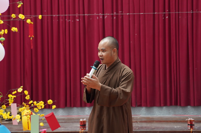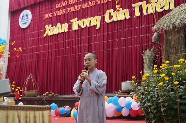 Sau lời đạo từ của Hòa thượng Viện trưởng là chương trình văn nghệ do các Tăng Ni sinh biểu diễn cùng một số hoạt động giao lưu, bốc thăm trúng thưởng đã mang lại niềm vui cho Tăng Ni sinh nhân dịp đón mừng xuân mới.