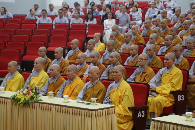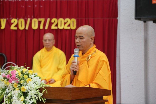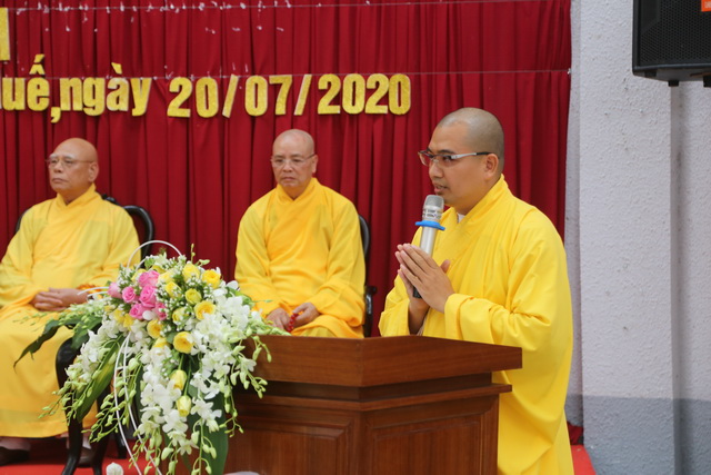 TT.TS Thích Nguyên Thành – UV HĐTS GHPGVN, Phó Trưởng Ban GDPG TƯ, Phó Viện trưởng kiêm Trưởng phòng Đào tạo Học viện PGVN tại Huế đã báo cáo sơ lược về hoạt động đào tạo của Học viện.