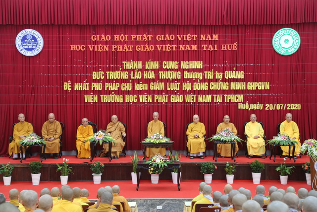 Chiều 20/7/2020 (30.5 Canh Tý); Trưởng lão Hòa thượng Thích Trí Quảng – Phó Pháp chủ kiêm Giám luật HĐCM GHPGVN, Viện trưởng Học viện PGVN TP.HCM đã thăm và có lời sách tấn đến Tăng Ni sinh Học viện PGVN tại Huế (p.An Tây, Huế) nhân mùa an cư năm Canh Tý, Pl.2564.