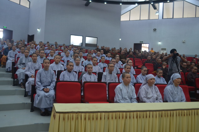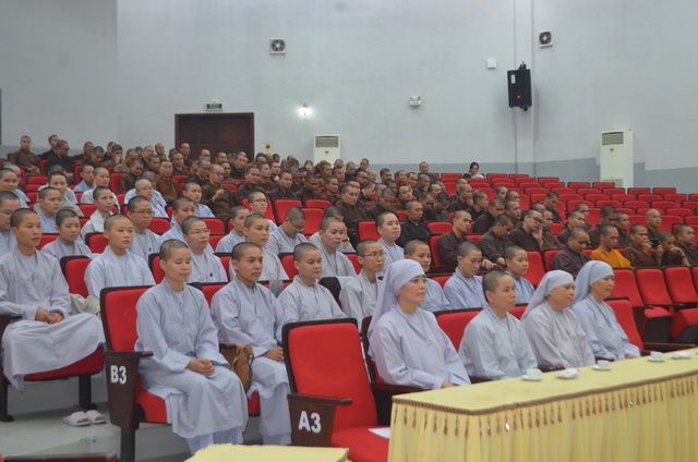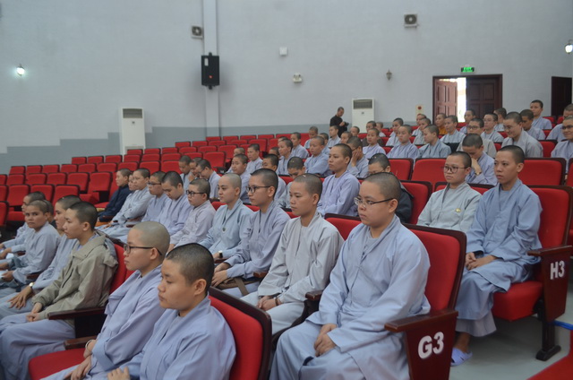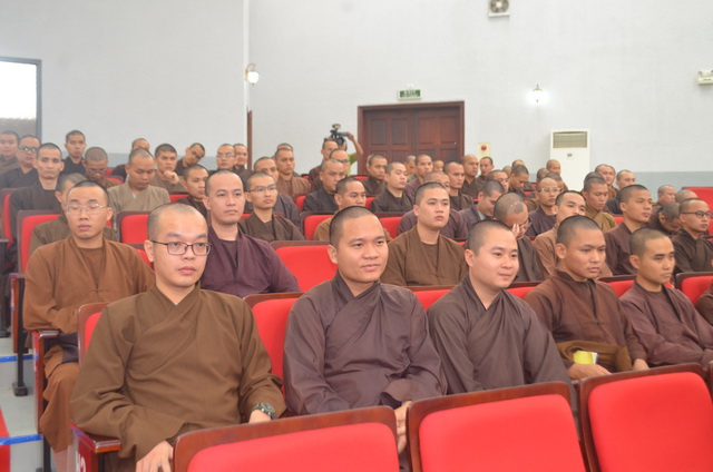 TT.TS Thích Thanh Quyết phát biểu chia sẻ, ban huấn từ đến Tăng Ni sinh