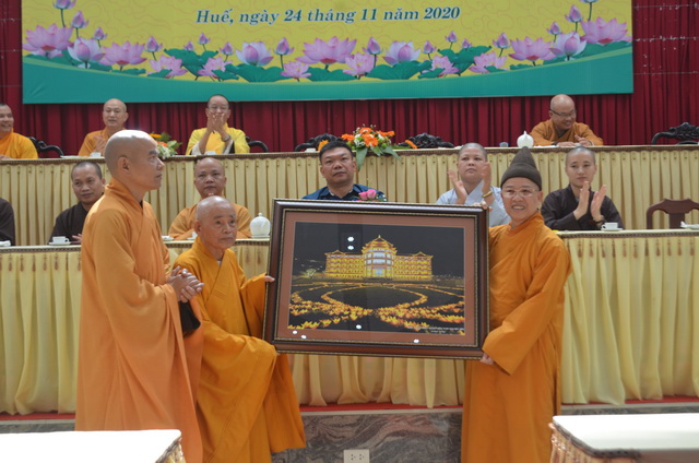 Tặng quà lưu niệm đến Học viện PGVN tại Huế