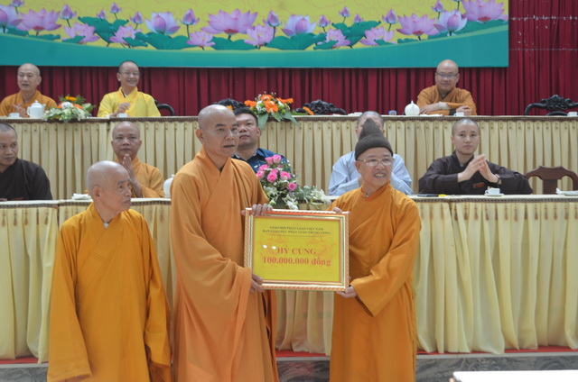 Trong chuyến thăm lần này, phái đoàn Ban GDPG TƯ cùng quý Phật tử đã trao tặng tịnh tài 200 triệu đồng đến Học viện.