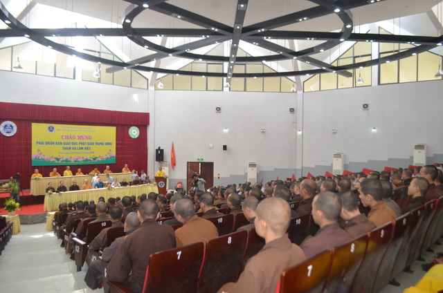 Đón tiếp phái đoàn tại Học viện có HT.Thích Đức Thanh – UVTT HĐTS GHPGVN, Thành viên Hội đồng Chỉ đạo Học viện; TT.TS Thích Nguyên Thành – UV HĐTS GHPGVN, Phó Trưởng ban GDPG TƯ, Phó Viện trưởng kiêm Trưởng Phòng Đào tạo Học viện; TT.TS Thích Nguyên Đạt – UV HĐTS GHPGVN, Phó Trưởng ban GDPG TƯ, Phó Viện trưởng kiêm Trưởng Phòng Đào tạo Sau đại học; ĐĐ.TS Thích Quang Tư – Phó Viện trưởng kiêm Trưởng phòng Thông tin Truyền thông; ĐĐ.TS Thích Hương Yên – Phó Viện trưởng kiêm Phòng Tổ chức Hành chính; TT.TS Thích Không Nhiên – Phó Viện trưởng kiêm Trưởng phòng Nghiên cứu khoa học; chư Tôn đức giáo thọ sư, giảng viên cùng Tăng Ni sinh các khóa của Học viện.