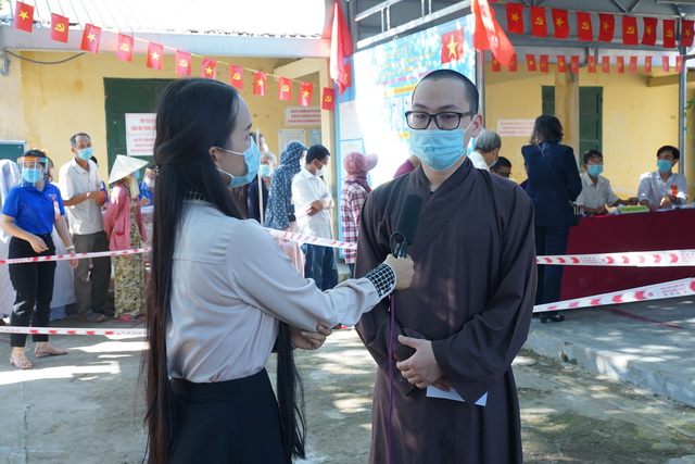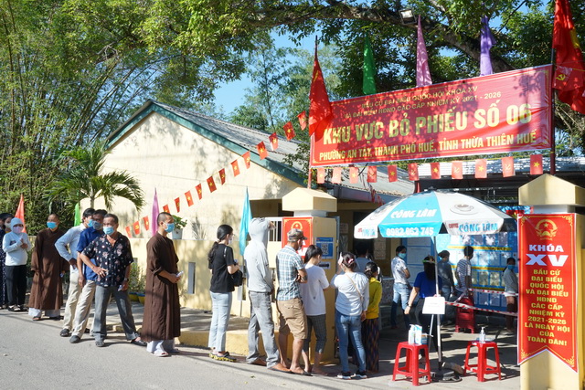 Tăng sinh nội xá đã có mặt đông đủ tại Khu vực bỏ phiếu số 06, phường An Tây, thành phố Huế thực hiện các thủ tục trình tự để tham gia bỏ phiếu chọn ra được những đại biểu có đức, có tài, xứng đáng đại diện cho ý chí và nguyện vọng của nhân dân.