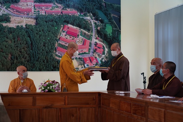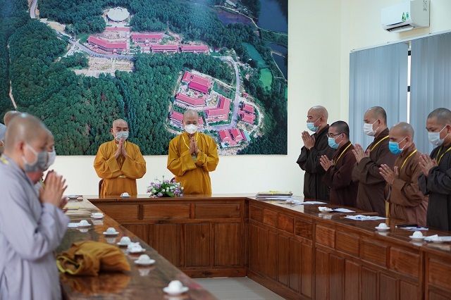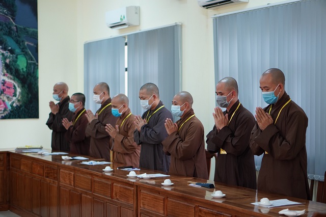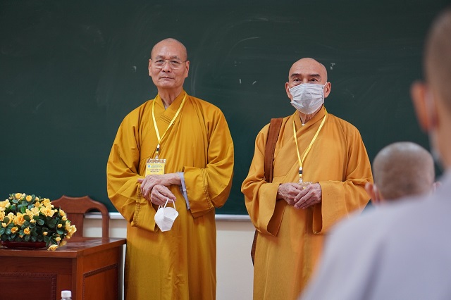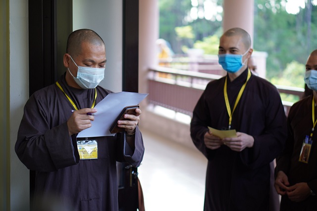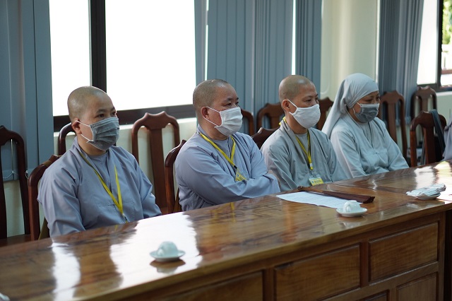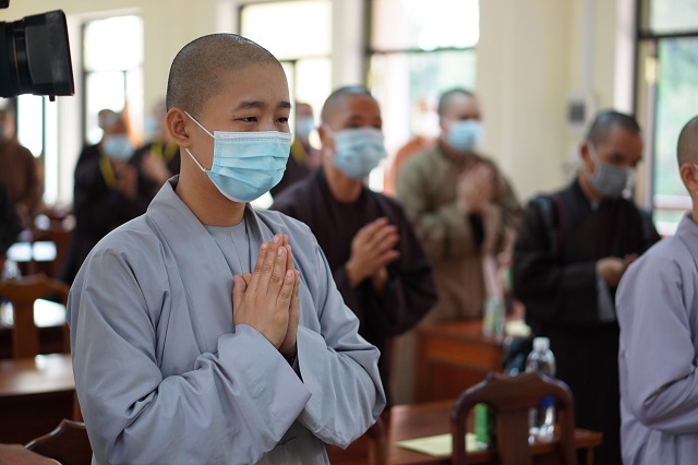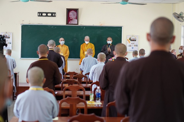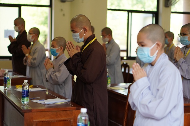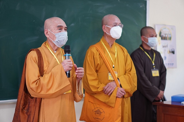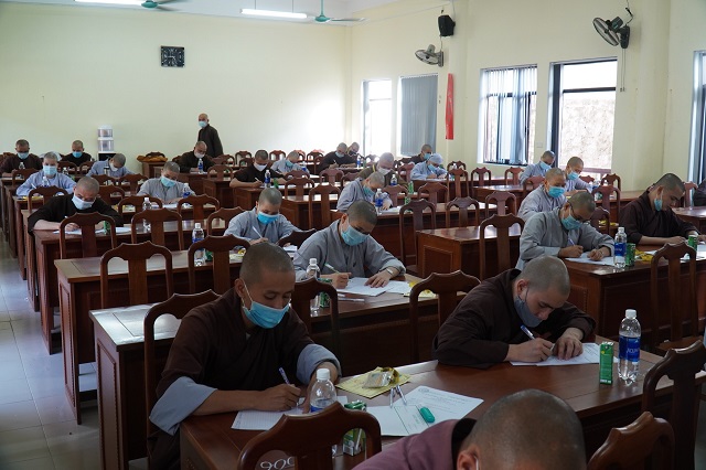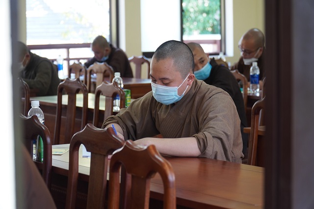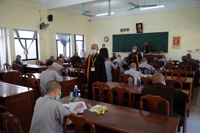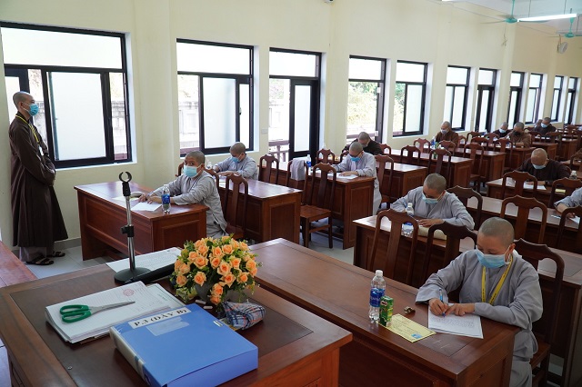 Trước khi các thí sinh thực hiện bài thi, HT.Thích Quang Nhuận – Thành viên Hội đồng Chỉ đạo Học viện và Hòa thượng Viện trưởng Thích Hải Ấn đã có những lời sách tấn, động viên đến các thí sinh, mong rằng các thí sinh sẽ chú tâm vào đề bài, bằng kiến thức đã được Học viện đào tạo thực hiện bài thi đạt kết quả thật tốt. Bên cạnh đó, các Tăng Ni thí sinh phải tuân thủ việc phòng chống dịch một cách hiệu quả nhất để kỳ thi được diễn ra suôn sẻ và hoàn thành viên mãn.