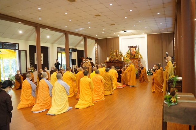 Sáng 27/1/2022 tại Tổ đình Từ Hiếu (phường Thủy Xuân, Huế); phái đoàn Học viện PGVN tại Huế do HT.Thích Quang Nhuận, Thành viên Hội đồng Chỉ đạo và HT.Thích Hải Ấn, Viện trưởng làm trưởng phái đoàn cùng chư Tôn đức Hội đồng Điều hành Học viện và Tăng Ni sinh đã viễng lễ tang Đức Trưởng lão Hòa thượng Thích Nhất Hạnh.