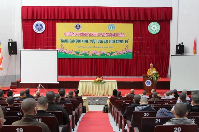 Sáng 07/4/2022 tại Hội trường Hoa Sen, Học viện Phật giáo Việt Nam tại Huế (phường An Tây, thành phố Huế) đã diễn ra buổi sinh hoạt ngoại khóa “Nâng cao sức khỏe, vượt qua đại dịch Covid-19” dành cho Tăng Ni sinh Học viện các khóa nhân ngày Sức khỏe thế giới 07/4.