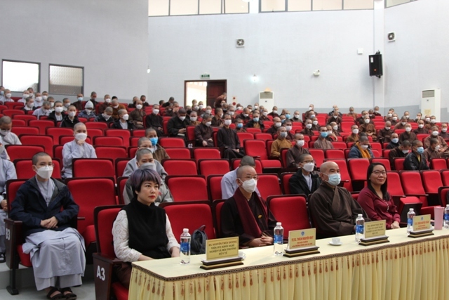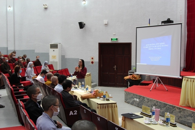 PGS.TS Doãn Ngọc Hải, PGS.TS Trương Thuyết Mai và Y sư Đặng Đức Truyền đã trình bày các chuyên đề liên quan, một số vấn đề về chăm sóc và nâng cao sức khỏe cho Tăng Ni, phòng chống dịch Covid-19 và điều trị hậu Covid-19 hiệu quả, tư vấn về dinh dưỡng và sức khỏe, các vấn đề cần lưu ý đối với chế độ ăn chay, vai trò của thuốc Nam và Đông y trong điều trị bệnh hiệu quả, khám bệnh bằng nguyên lý Đông y và kê đơn cho một số Tăng Ni (tim mạch, cơ xương khớp, thừa cân…), vai trò rèn luyện phục hồi chức năng vận động đối với sức khỏe, giới thiệu môn Shinri (Nhật Bản)…