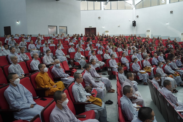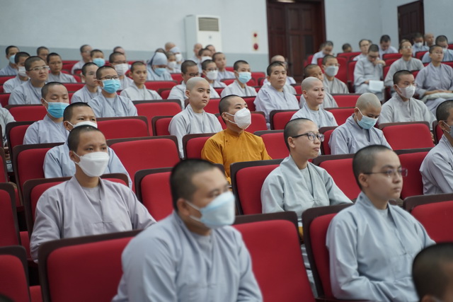 Đón tiếp thân mật phái đoàn tại Học viện có HT.Thích Quang Nhuận, Thành viên Hội đồng Chỉ đạo Học viện; HT.Thích Hải Ấn, UVTT HĐTS GHPGVN, Phó Trưởng Ban Thường trực Ban Giáo dục Phật giáo Trung ương, Viện trưởng Học viện; TT.TS Thích Nguyên Thành, UV HĐTS GHPGVN, Phó Trưởng Ban Giáo dục Phật giáo Trung ương, Phó Viện trưởng kiêm Trưởng Phòng Đào tạo Học viện; TT.TS Thích Nguyên Đạt, UV HĐTS GHPGVN, Phó Trưởng Ban Giáo dục Phật giáo Trung ương, Phó Viện trưởng kiêm Trưởng phòng Đào tạo sau Đại học; ĐĐ.TS Thích Quang Tư – Phó Viện trưởng kiêm Trưởng Phòng Thông tin Truyền thông Học viện; ĐĐ.TS Thích Hương Yên – Phó Viện trưởng kiêm Trưởng Phòng Hành chính Học viện; chư Tôn đức Hội đồng Điều hành Học viện, chư Tôn đức giáo thọ cùng toàn thể Tăng Ni sinh các khóa đang theo học tại Học viện.