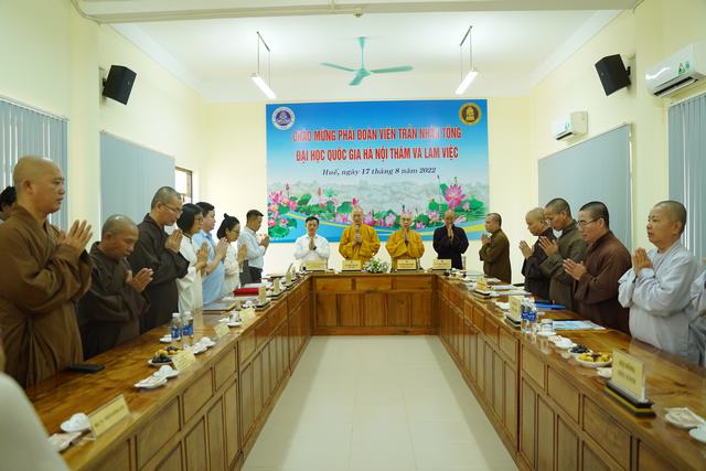Sáng 17/8/2022 tại Học viện PGVN tại Huế (phường An Tây, Huế); phái đoàn Viện Trần Nhân Tông, Đại học Quốc gia Hà Nội do PGS.TS Nguyễn Tiến Vinh, Phó Viện trưởng làm trưởng phái đoàn đã thăm và làm việc với Học viện Phật giáo Việt Nam tại Huế.