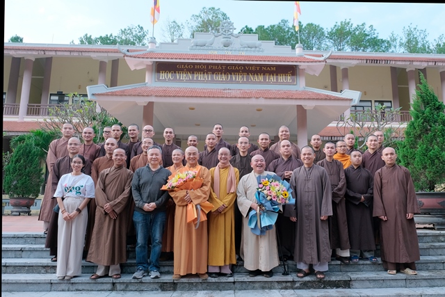 Đón tiếp phái đoàn tại Học viện có TT.TS Thích Nguyên Đạt, UV HĐTS GHPGVN, Phó Trưởng Ban GDPG Trung ương, Phó Trưởng Ban Trị sự kiêm Trưởng Ban Phật giáo Quốc tế GHPGVN tỉnh TT.Huế, Phó Viện trưởng Học viện PGVN tại Huế; ĐĐ.TS Thích Hương Yên, Phó Viện trưởng kiêm Trưởng Phòng Hành chính Học viện; ĐĐ.TS Thích Thiền Định, Phó Văn phòng Học viện cùng các Tăng sinh đang theo học tại Học viện.