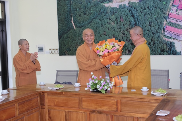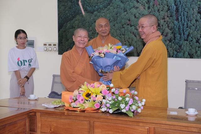 Chư Tôn đức Hội đồng Điều hành Học viện tặng hoa đến quý phái đoàn
