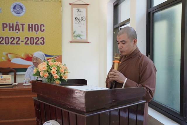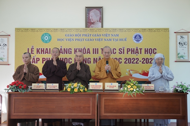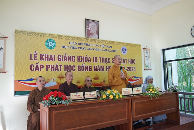 Hòa thượng Viện trưởng Thích Hải Ấn đã có lời huấn từ tại lễ khai giảng, mong rằng các Tăng Ni học viên sẽ cố gắng nghiên cứu chuyên sâu về ngành học, đọc nhiều tài liệu để kết quả học tập đạt thành tựu trong 02 năm nghiên cứu. Đồng thời Hòa thượng cũng chia sẻ về học bổng Trí Quang, lúc sinh tiền Đức Trưởng lão Hòa thượng Thích Trí Quang luôn luôn quan tâm đến công tác đào tạo Tăng tài, và Tăng Ni sinh hôm nay chính là những nhân sự tương lai đảm trách các công tác Phật sự của Giáo hội.