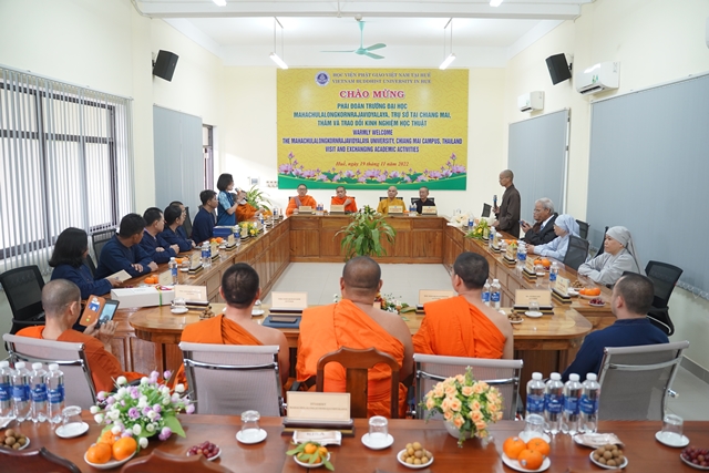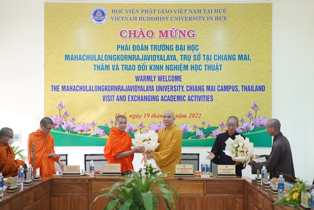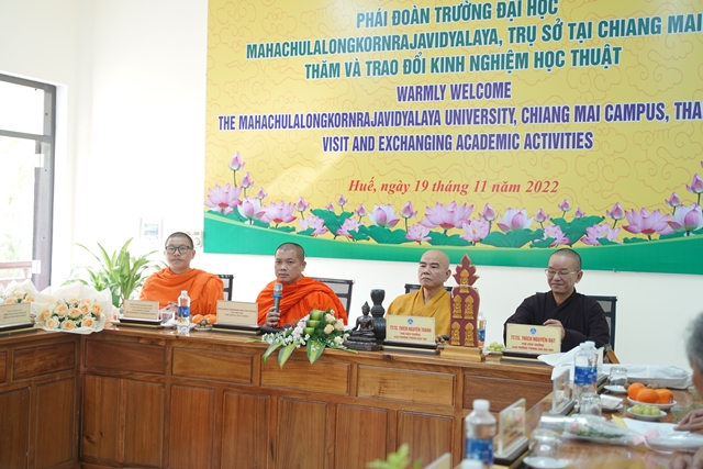 Sáng 19/11/2022 tại Học viện PGVN tại Huế (phường An Tây, Huế); đoàn Đại học Mahachulalongkornrajavidyalaya (Chiang Mai, Thái Lan) do Thượng tọa Phó Hiệu trưởng Phrakhrusiriborrommathatpitak làm trưởng phái đoàn đã thăm và trao đổi kinh nghiệm học thuật với Học viện PGVN tại Huế.