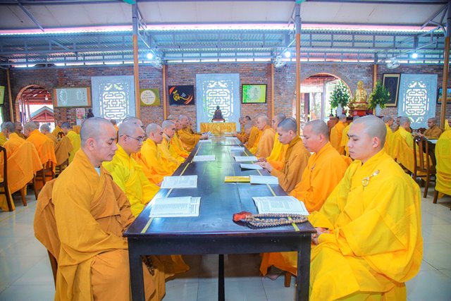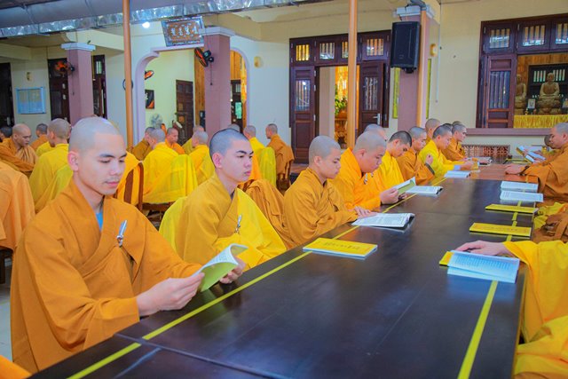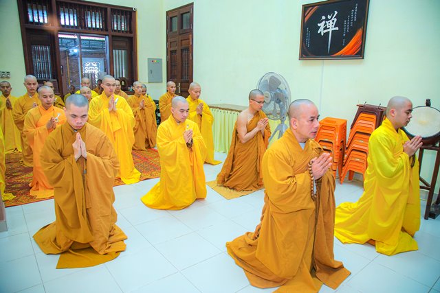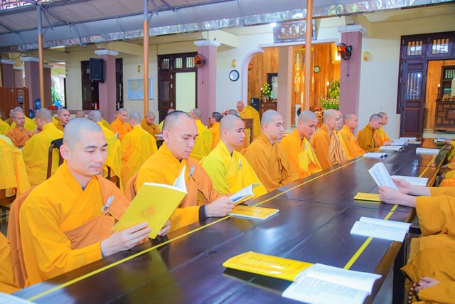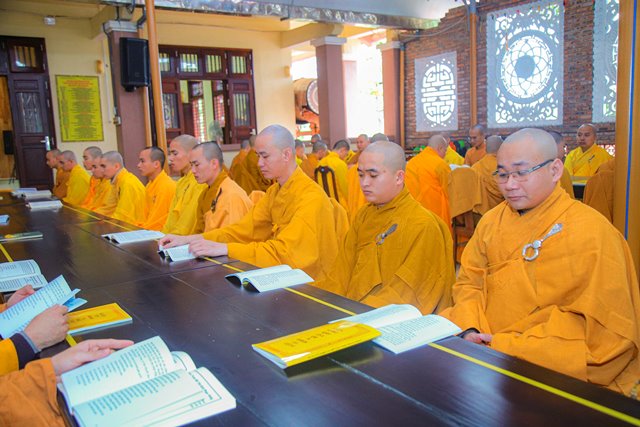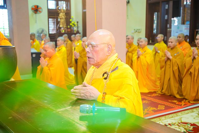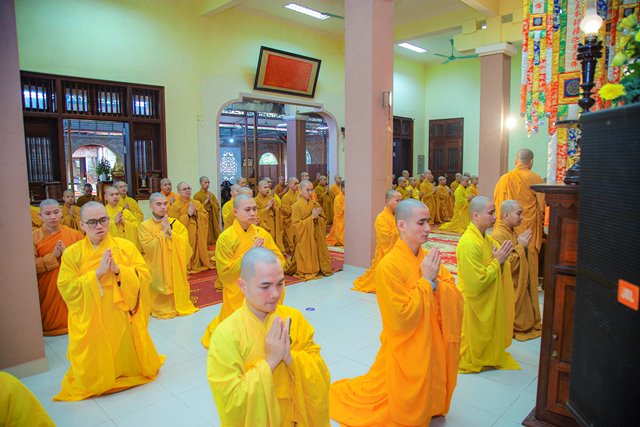 HT.Thích Chơn Hương, Thành viên HĐCM GHPGVN, Giáo phẩm Chứng minh BTS GHPGVN tỉnh TT.Huế, Thành viên Hội đồng Chỉ đạo Học viện PGVN tại Huế đã niêm hương bạch Phật, chư Tôn đức Ban Quản lý Nội xá cùng toàn thể Tăng sinh cử hành nghi thức bố tát.