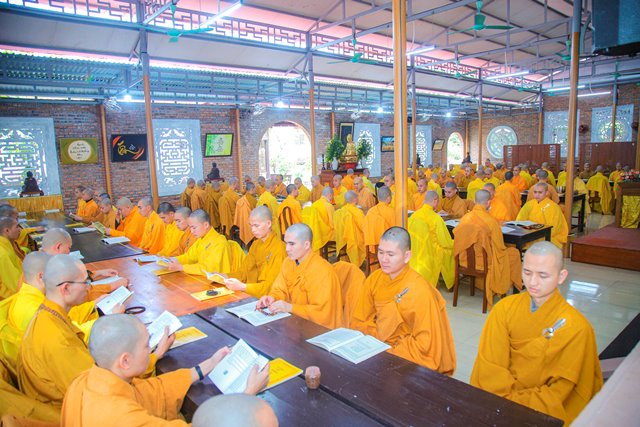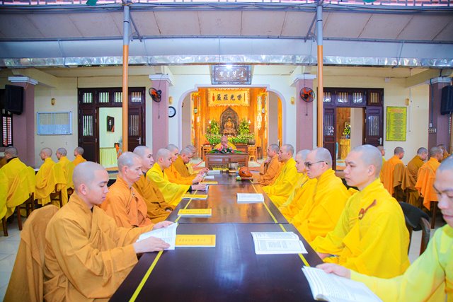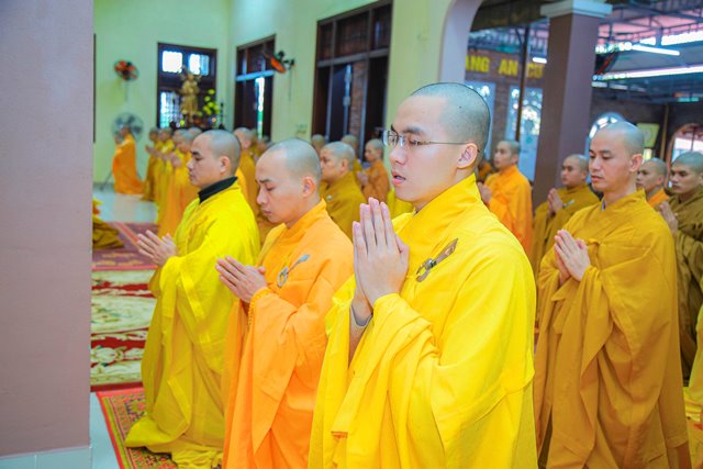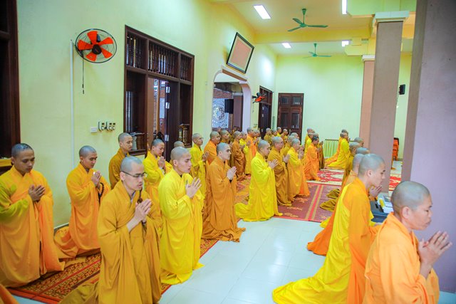 Sáng 05/1/2023 (14.12 Nhâm Dần) tại Tăng xá Học viện PGVN tại Huế; toàn thể Tăng sinh nội xá đã vân tập trang nghiêm bố tát và thính giới kỳ cuối năm Nhâm Dần.