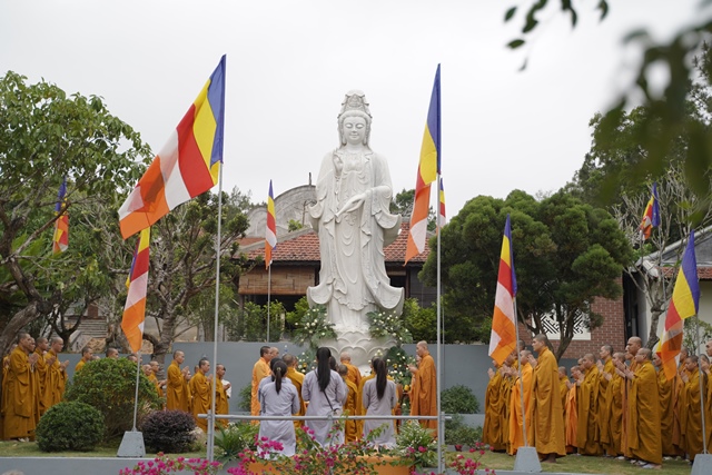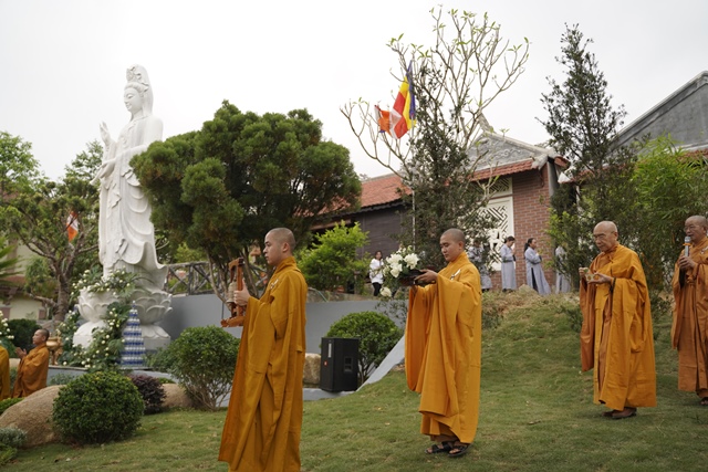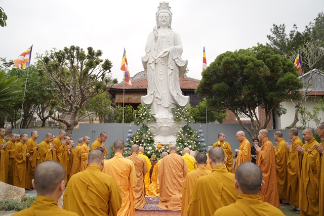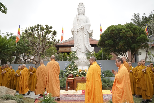 Tại buổi lễ, chư tôn đức Giáo phẩm Chứng minh đã niêm hương cầu nguyện, HT.Thích Quang Nhuận cùng chư Tôn thiền đức đã cử hành lễ sái tịnh và nghi lễ an vị. Tượng Đức Quán Thế Âm Bồ Tát được tôn trí trang nghiêm tại khuôn viên của Tăng xá Học viện, một không gian xanh vườn thiền để các Tăng sinh nội xá đảnh lễ, chiêm bái.