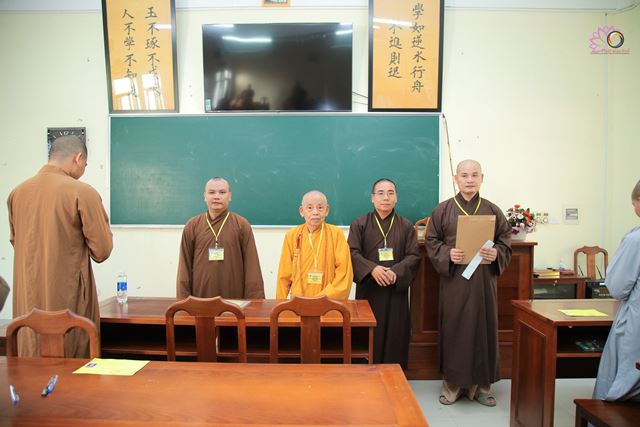 Ban huấn từ tại lễ khai mạc, Hòa thượng Viện trưởng Thích Hải Ấn đã nhắc nhớ các Tăng Ni thí sinh tuân thủ Nội quy phòng thi, tập trung thực hiện bài thi cẩn trọng để đạt kết quả tốt trong kỳ thi lần này.