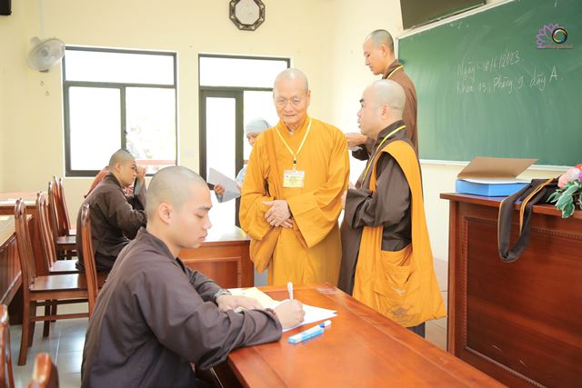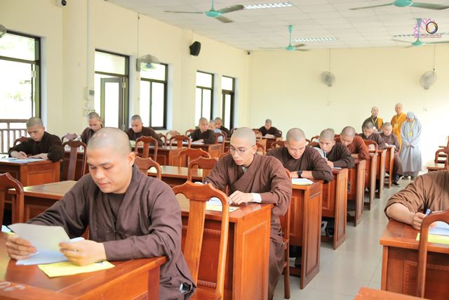 Sau lễ khai mạc, 128 Tăng Ni thí sinh đã thực hiện môn thi đầu tiên. Buổi thi diễn ra nghiêm túc, đúng nội quy dưới sự hướng dẫn, giám sát chặt chẽ của chư Tôn đức giám thị.