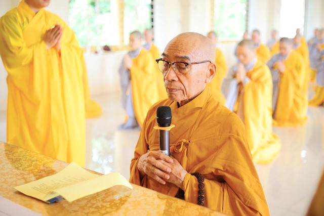 Tại buổi lễ, Trưởng lão Hòa thượng Thích Quang Nhuận đã có lời sách tấn đến toàn thể chư hành giả an cư, Trưởng lão Hòa thượng nhắc nhớ chư hành giả luôn nỗ lực tu tập và nghiêm trì tịnh giới để Phật sự được thành tựu như sở nguyện.