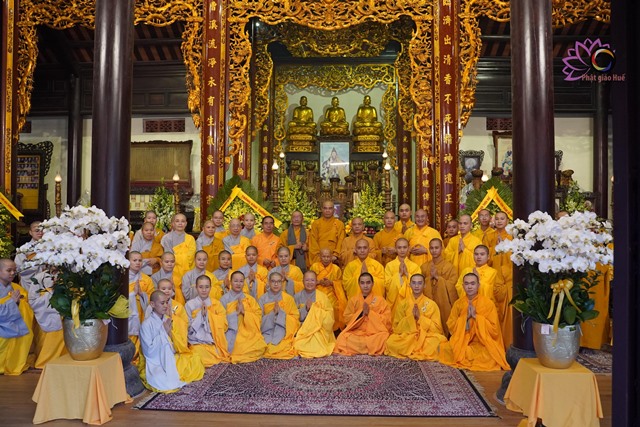 Phái đoàn Học viện Phật giáo Việt Nam tại Huế do TT.TS Thích Nguyên Thành, UV HĐTS GHPGVN, Phó Trưởng Ban Giáo dục Phật giáo Trung ương, Phó Viện trưởng Thường trực kiêm Trưởng phòng Đào tạo Học viện PGVN tại Huế làm trưởng phái đoàn, chư Tôn đức Lãnh đạo Hội đồng Điều hành Học viện cùng Tăng Ni sinh các khóa.