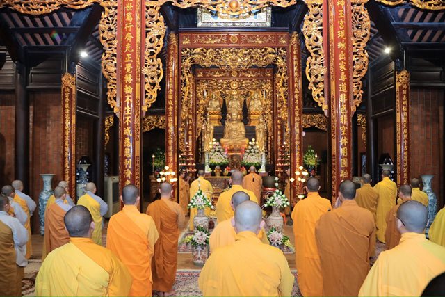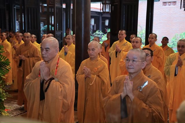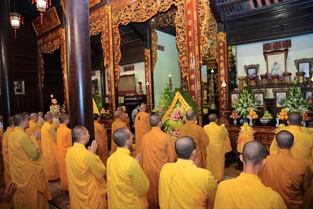 Đối trước Giác linh Cố Trưởng lão Hoà thượng nguyên Viện trưởng Học viện PGVN tại Huế, toàn thể chư Tôn đức Hội đồng Điều hành và Tăng Ni sinh viên đã thành tâm dâng hương đảnh lễ và tụng thời kinh Di Giáo, nguyện cầu đất nước thái bình, mọi thiên tai lụt bão đều được tiêu tan, nhân dân sống trong sự yên bình hạnh phúc.