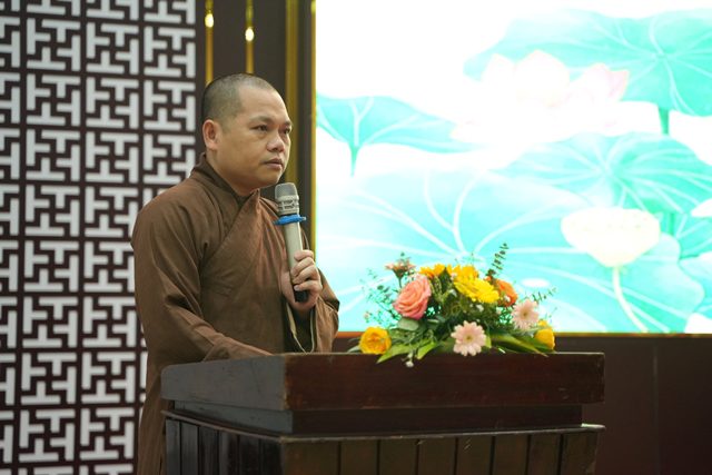 Tiếp đến, bà Trần Thị Minh Nga đã trực tiếp phổ biến các nội dung cơ bản của Luật Tín ngưỡng, Tôn giáo, đồng thời khái quát thực trạng hoạt động Phật giáo trên cả nước, với phạm vi hiện diện rộng khắp, có tính phổ quát cao và giữ vị trí quan trọng trong đời sống tinh thần của nhân dân. Bà nhấn mạnh, Giáo hội Phật giáo Việt Nam đã có nhiều đóng góp to lớn cho đất nước và xã hội, được Nhà nước ghi nhận bằng những phần thưởng cao quý, trong đó có Huân chương Hồ Chí Minh, đồng thời cho biết rằng năm 2025 được đánh giá là năm có nhiều dấu ấn của Phật giáo, với việc tổ chức thành công Đại lễ Vesak, thu hút sự quan tâm và niềm tin rất lớn của người dân, thể hiện qua số lượng hàng chục triệu lượt người tham gia các hoạt động chiêm bái xá lợi đức Phật, góp phần khẳng định vai trò tích cực của Phật giáo trong đời sống xã hội.