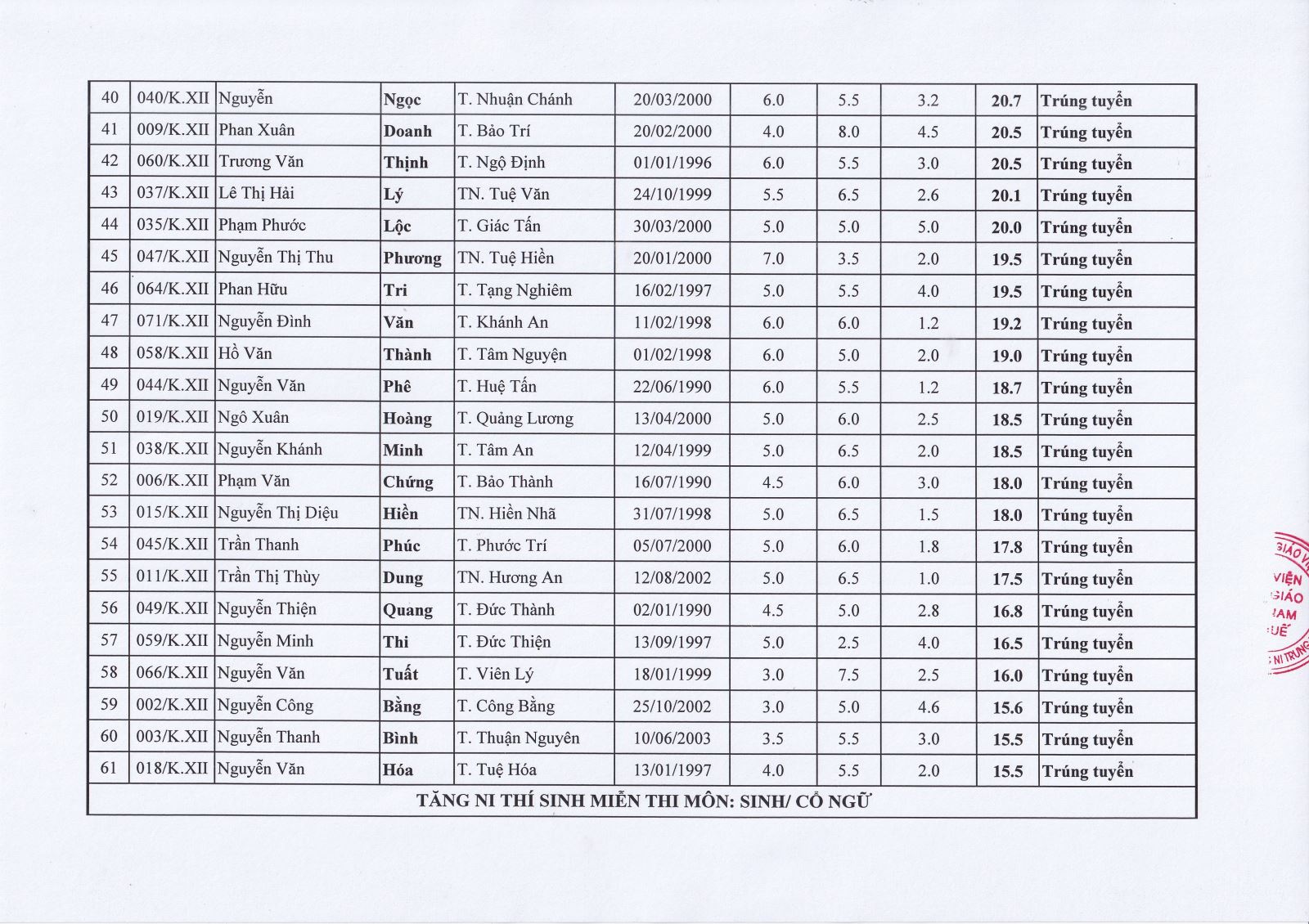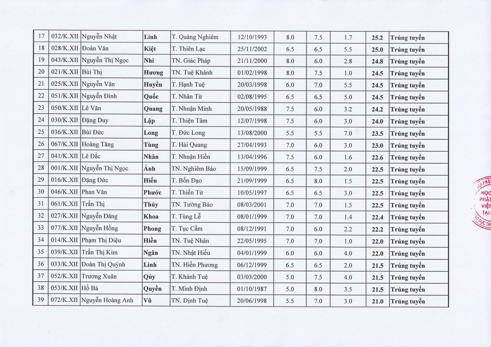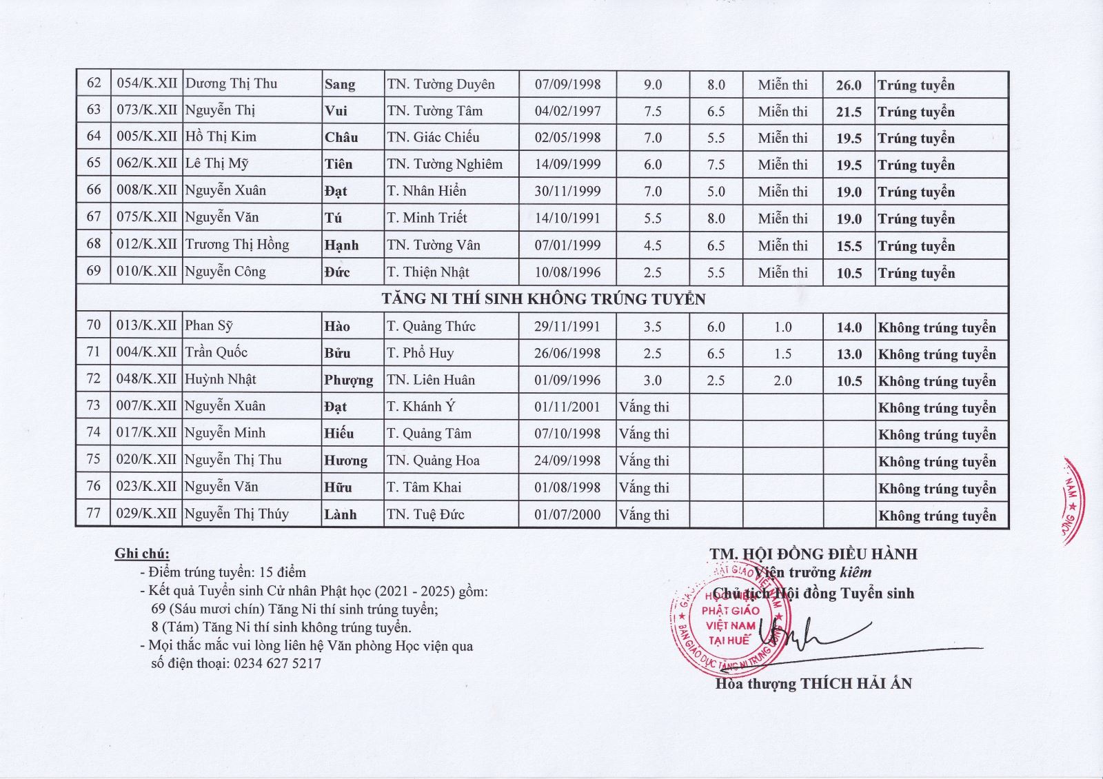 Kỳ thi tuyển sinh đợt 1, có 69 Tăng Ni thí sinh trúng tuyển và 08 Tăng Ni thí sinh không trúng tuyển.