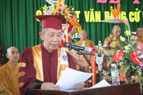 HT. Thích Giác Quang - Phó Viện trưởng, Trưởng ban Tổ chức Lễ tốt nghiệp đọc lời cảm tạ